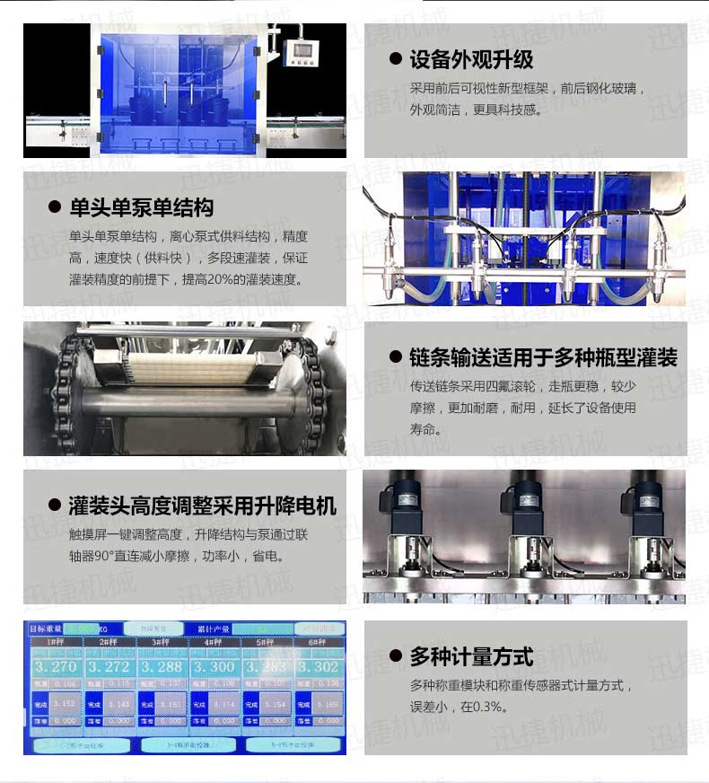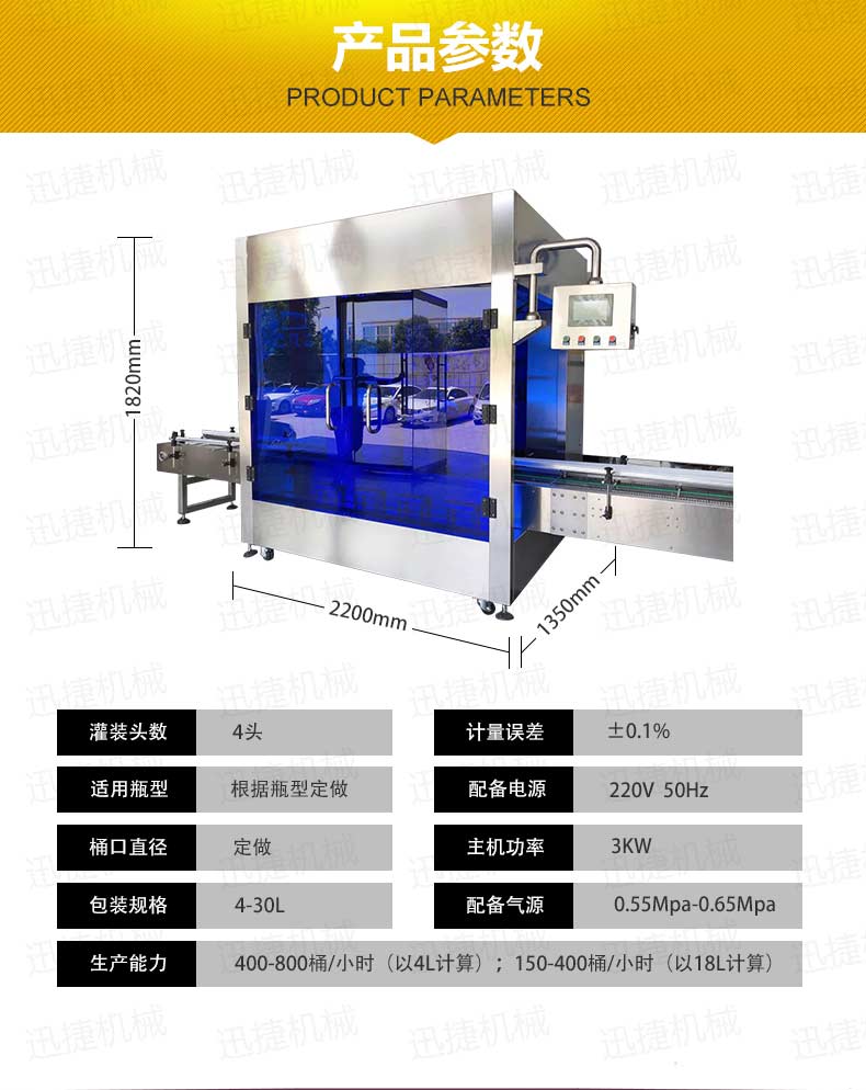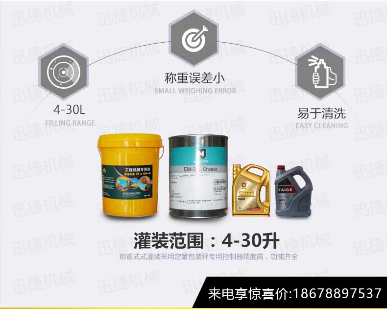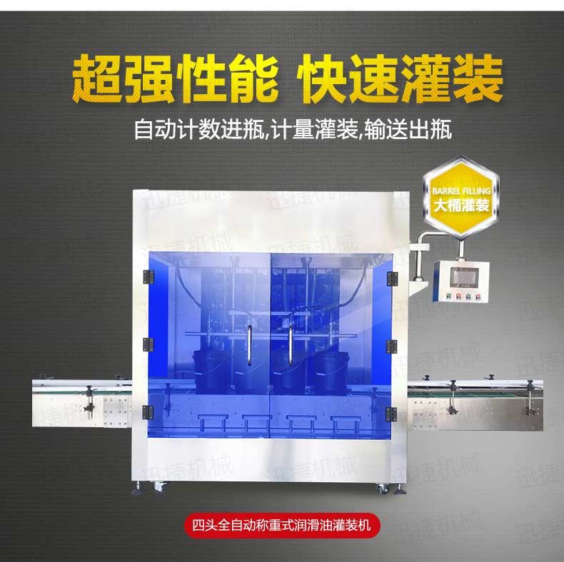 機(jī)油灌裝機(jī)適用于對4kg-25kg汽車用品類產(chǎn)品:潤滑油、防凍液、車用尿素等液體灌裝。自動完成計(jì)數(shù)進(jìn)瓶、計(jì)重量灌裝、輸送出瓶等一系列操作。 特別適用于潤滑油、水劑、食用油的定量灌裝,是食品,醫(yī)藥,化妝品以及精細(xì)化工等行業(yè)的理想灌裝機(jī)。本機(jī)采用可編程控制器(PLC)、高速工控組態(tài)軟件進(jìn)行實(shí)時(shí)監(jiān)控的控制,使用調(diào)節(jié)方便。整機(jī)按GMP標(biāo)準(zhǔn)要求制作,各管路連接采用快裝方式,拆卸清洗方便,與物料接觸部位及外露部位均采用不銹鋼制造。整機(jī)安全、環(huán)保、安全、美觀、能適應(yīng)各種不同環(huán)境工作。