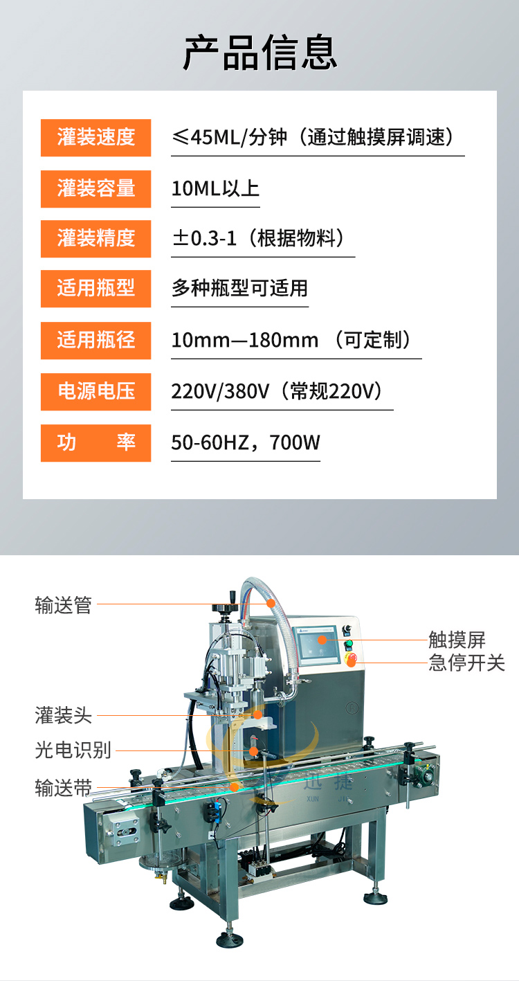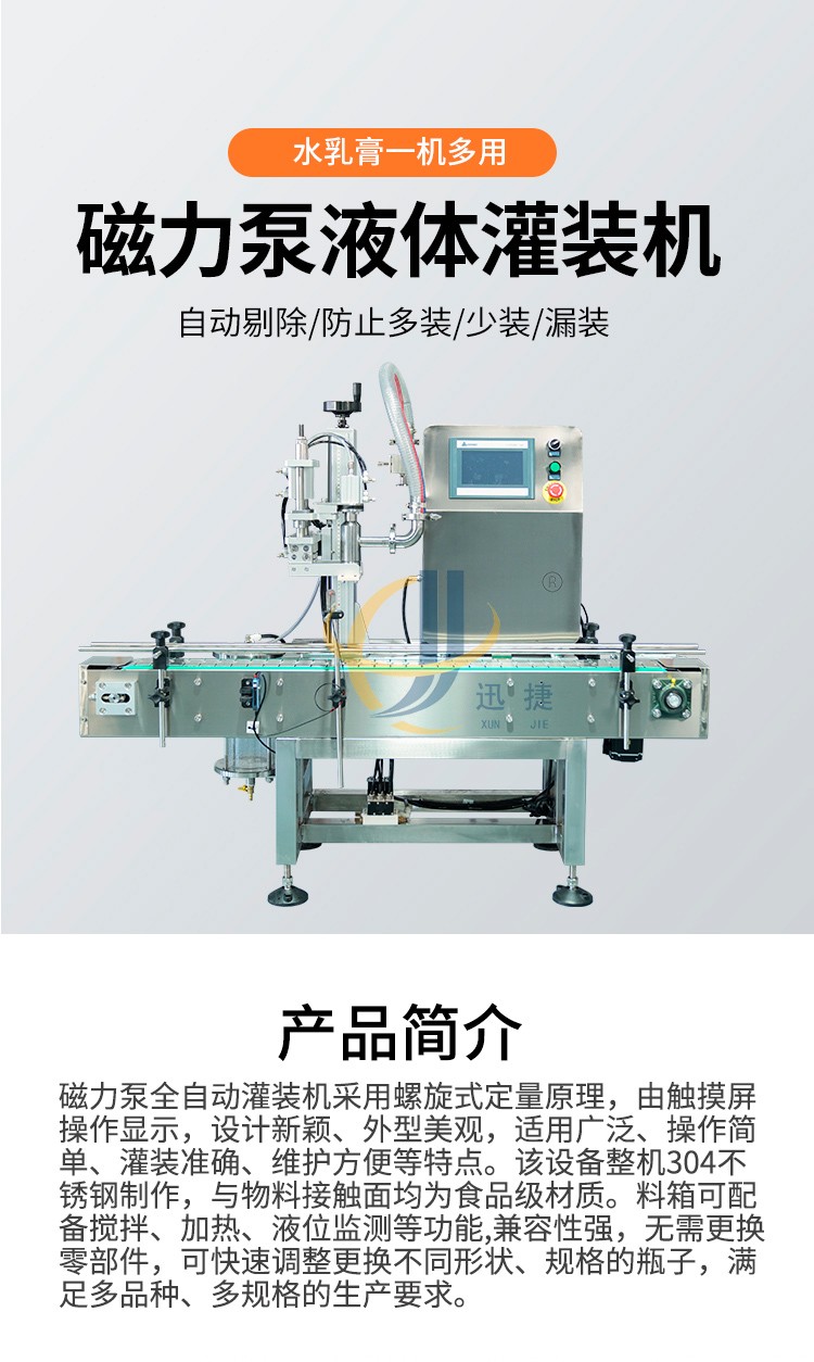 磁力泵全自動灌裝機采用螺旋式定量原理,由觸摸屏操作顯示,設(shè)計新穎、外型美觀,適用廣泛、操作簡單、灌裝準(zhǔn)確、維護方便等特點。