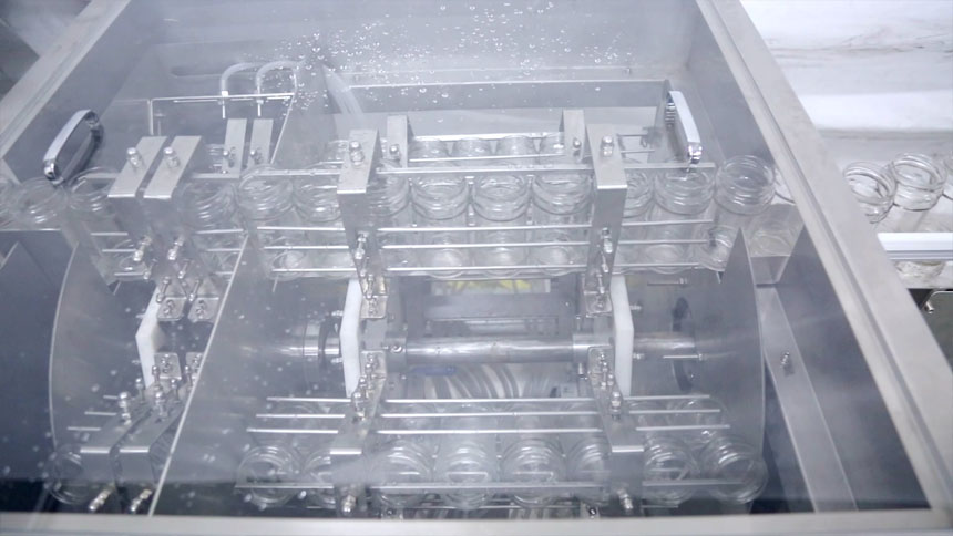 一、瓶子外壁噴淋,內(nèi)壁沖洗,沖瓶衛(wèi)生干凈。