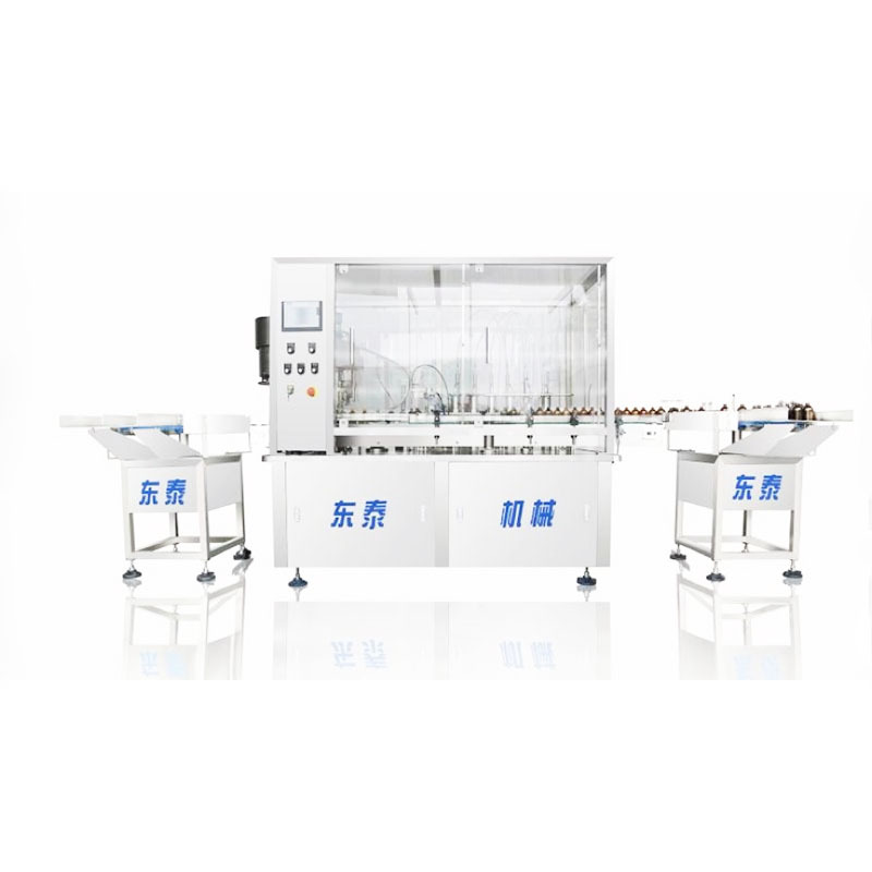 西林瓶(penicillin bottle),又稱:硼硅玻璃或鈉鈣玻璃管制(模制)注射劑瓶,是一種膠塞封口的小瓶子。早期盤尼西林多用其盛裝,故名西林瓶。西林瓶灌裝的多為液體,藥品、營養(yǎng)液等,針對(duì)這種小瓶型液體灌裝,機(jī)械廠家制造出小計(jì)量液體灌裝機(jī)來幫助液體灌裝的灌裝和生產(chǎn),小計(jì)量液體灌裝機(jī)也叫作西林瓶灌裝旋蓋一體機(jī),小計(jì)量液體灌裝機(jī)屬于聯(lián)動(dòng)機(jī),其工作步驟包含了理瓶、灌裝、理蓋。掛蓋。壓蓋、旋蓋的步驟,滿足了液體包裝的大部分步驟,那么液體灌裝機(jī)該如何選擇呢?