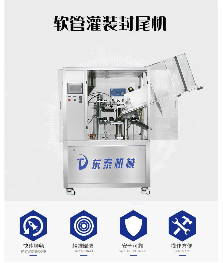 軟管灌裝封尾機(jī)適用于醫(yī)藥、食品、化妝品、日用化工用品等行業(yè)的塑管、鋁塑復(fù)合管灌裝封尾。軟管灌裝封尾機(jī)可將各種糊狀