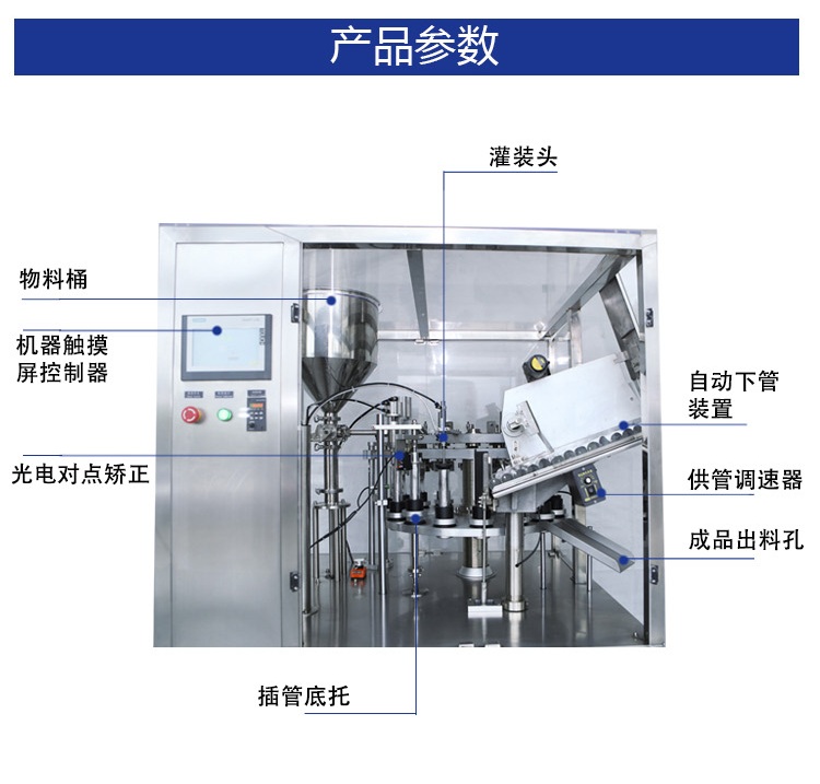 C、該機(jī)由全自動(dòng)操作系統(tǒng)完成供管、洗管、識(shí)標(biāo)、灌裝、熱溶、封尾、打碼、修整、出成品全過(guò)程。
