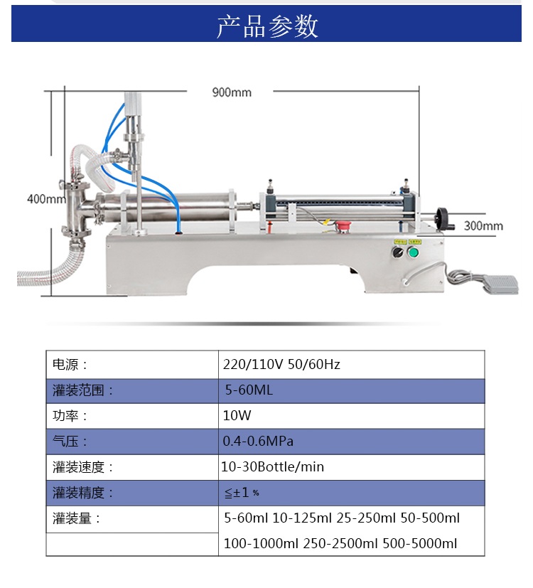 產(chǎn)品名稱:小型半自動單頭液體灌裝機
